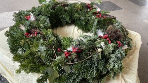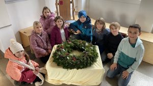 Die Kinder der Schulbauernhof-AG haben einen eigenen Adventskranz gemacht. Hierfür sammelten sie Efeu, Hagebutten, Tannenzapfen, Eicheln, Moos, Trockenblumen, Federn und Schneckenhäuser im Wald. Stolz senden sie nun ihren weihnachtlichen Gruß an die Schulfamilie und an alle, die sich mit ihnen freuen.