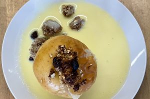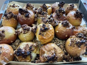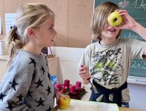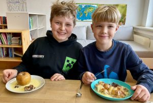 Passend zum Gedicht des Monats „Der Bratapfel“ ließen sich die Schülerinnen und Schüler der Klasse 3 selbstgemachte Bratäpfel mit Vanillesoße schmecken.