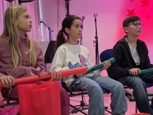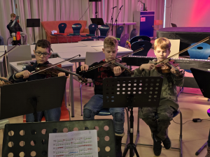 Am 28. November machte sich die 4. Klasse zusammen mit ihrer Klassenlehrerin Frau Schliefkowitz und ihrer Musiklehrerin Frau Waibel auf den Weg nach Unterbettringen. Die winterliche Einstimmung begann mit einem Konzert des Unterstufenorchesters und des Unterstufenchores. Im Anschluss durften die SchülerInnen in ausgewählten Workshops musizieren: die Begleitung von „Jingle Bells“ mit Ukulelen, ein Instrumentalwerk mit Streichinstrumenten, „Morgen kommt der Weihnachtsmann“ auf vielfältige Weise mit Boomwhackern, ein beeindruckendes Werk mit Percussion oder die Gestaltung eines Winterliedes mit Stimme und Bewegungen. Viel Neues konnte ausprobiert und später den anderen Gruppen präsentiert werden.